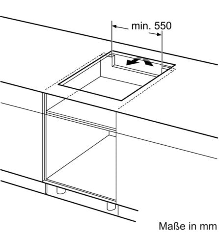 Min. Nischenmaße für Installation (H x B x T) : 55 x 560-560 x 490-500 mm