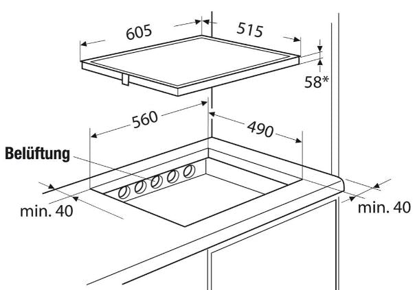 - Ausschnittmaße B x T ca. 560 x 490 mm