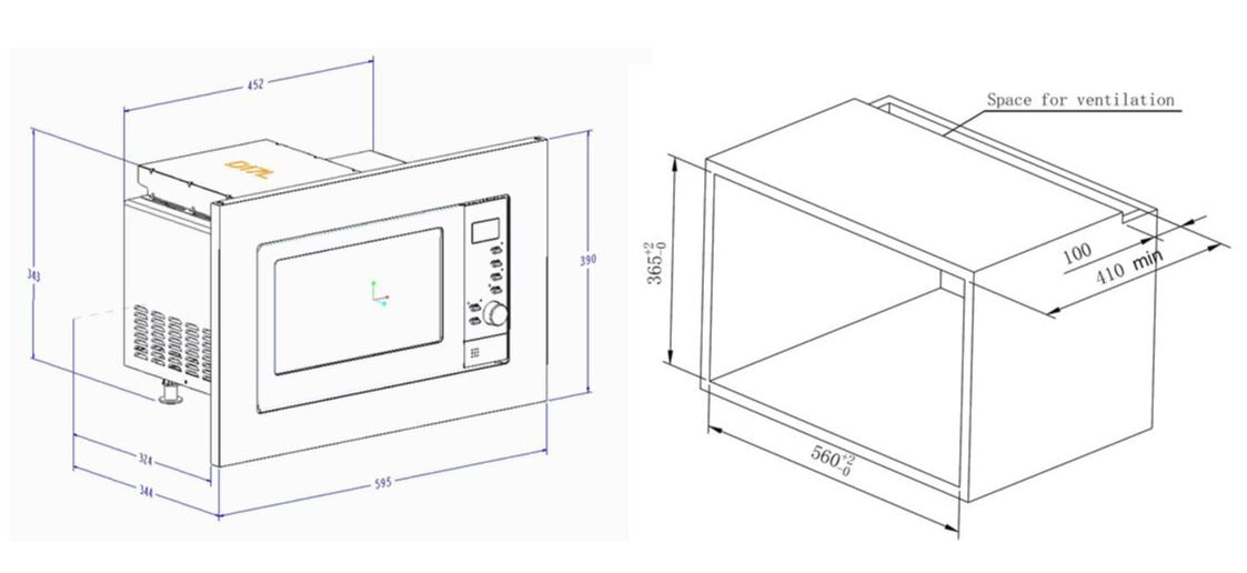 Ausstattung Grill, Auftaufunktion, LED-Anzeige, Endsignal, Kindersicherung, digitaler Timer (bis 95 min), Drehteller, Grillregal, Einbaurahmen