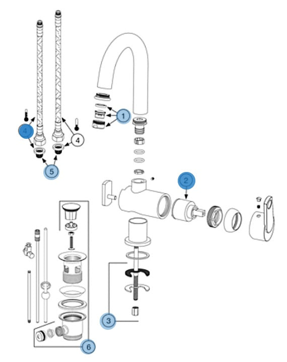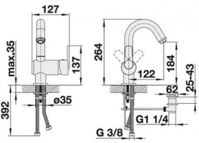 - Waschtischarmatur mit flexiblen Anschlussschläuchen G 3/8",