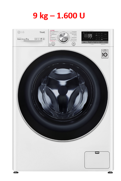 - Fassungsvermögen: 9 kg - max. 1.600 U / min.